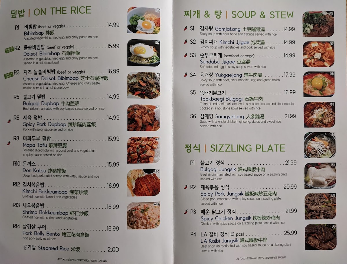 Introducing the menu at Seoul 2 Soul, located in the heart of downtown Kingston, promises an authentic Korean dining experience. The restaurant showcases a variety of dishes celebrated for their rich flavors and generous portions. Highlights include the savory pork bone soup, a customer favorite, and the vibrant bibimbap, available in a delightful hot stone bowl that allows diners to tailor the spice to their taste.